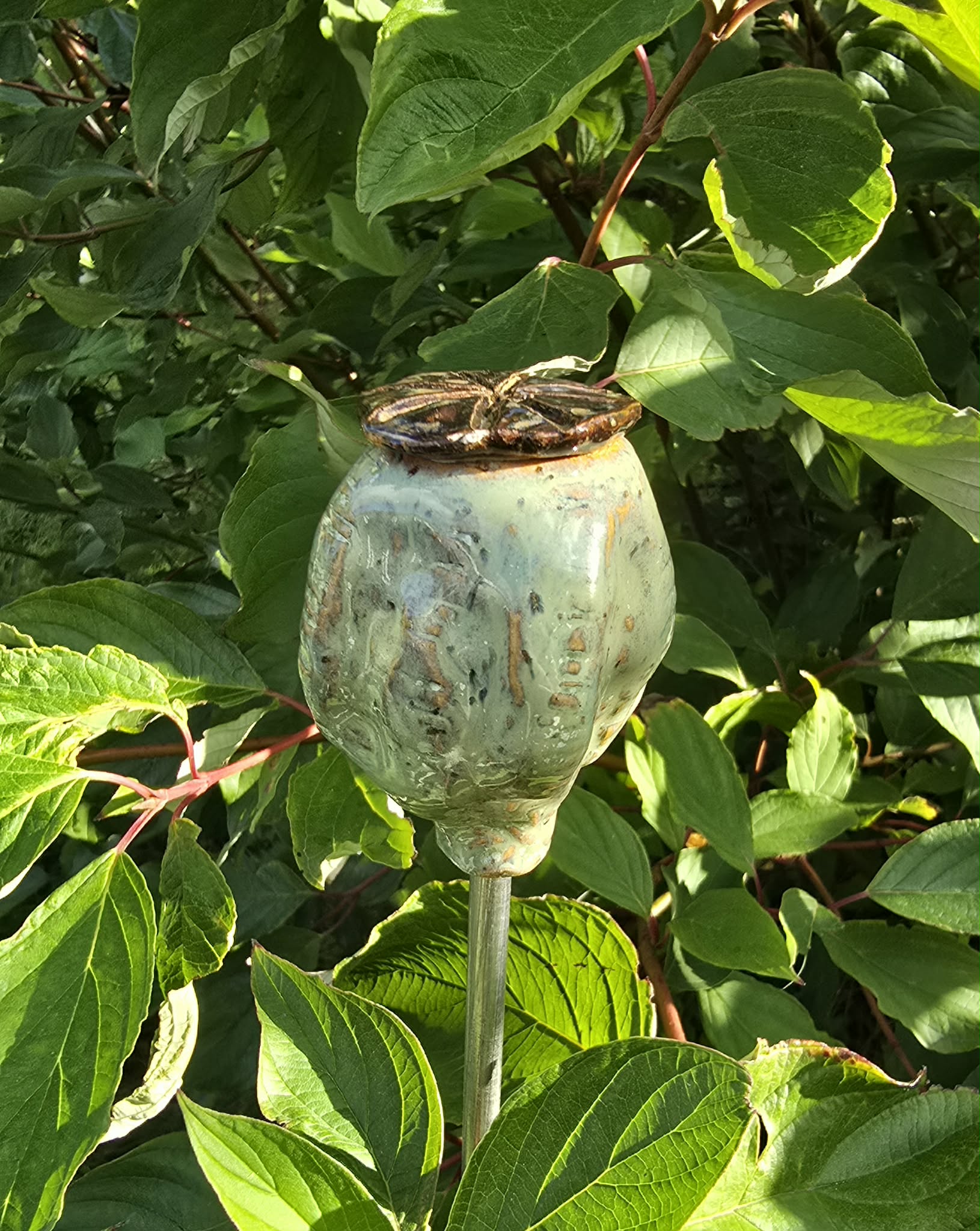 En håndlavet frøkapsel til havespyd med et organisk og let råt udtryk.